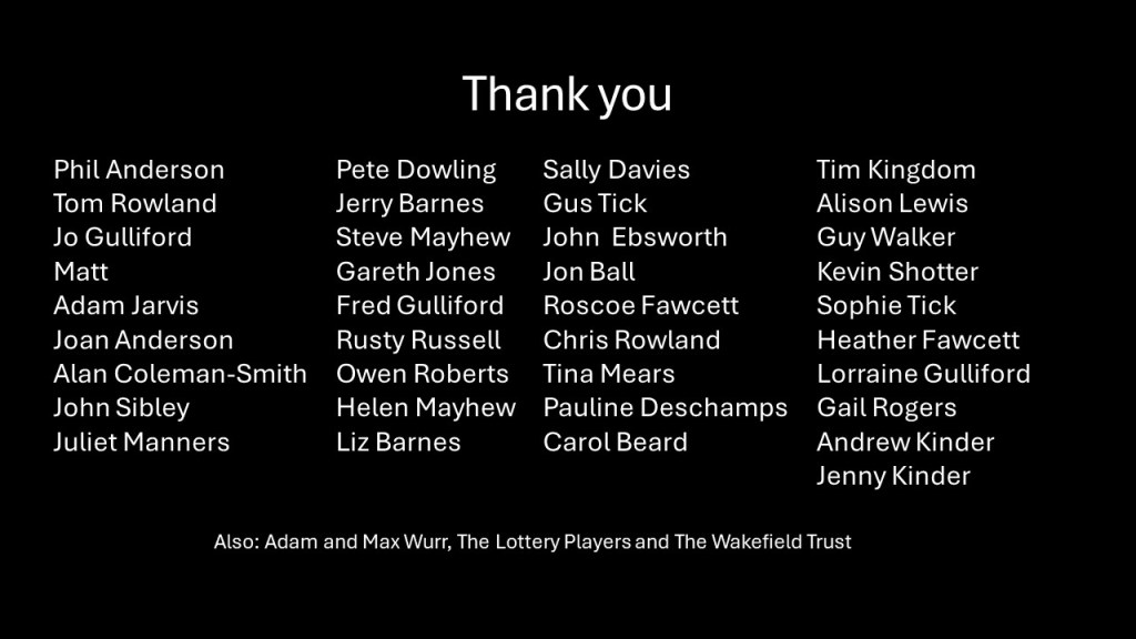 2025 Celebration Party With the project completed the committee invited those who helped to a celebration party. Party time decorations Snacks and Rusty’s bar Decorated and ready to go Listening to the Chair Phil gets a thank you from Juliet The Team
