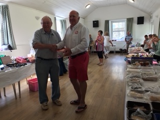 Viv handing over cheque to Hope Cove RNLI